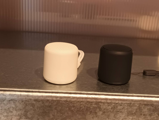 體積約同「小編拳頭」(男性手比會更小),機身輕巧,搭配掛繩方便隨身攜帶。單次充電約90分鐘,續航2-10小時(依音量而異),待機可超過6個月。支援藍牙連接,傳輸距離10公尺,具備音樂播放與通話功能。提供音樂與遊戲兩種模式,可同時連接兩個喇叭,呈現立體聲效果,提升聆聽體驗。音樂模式優化播放品質,尤其人聲清晰;遊戲模式低延遲傳輸,畫面與聲音同步。售價590元,低於一般藍牙耳機價格。