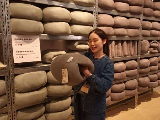 午睡用柔軟多用途靠枕。(記者林育如/攝)