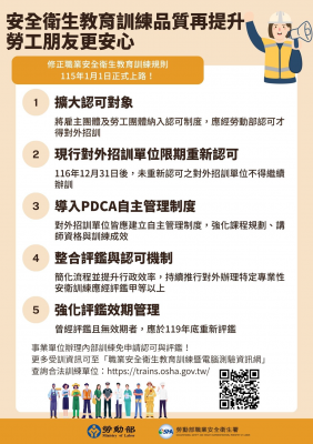 職業安全衛生教育訓練新規115年上路 訓練品質再升級