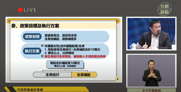 政院拍板!每胎補助10萬元 新制明年元旦起實施