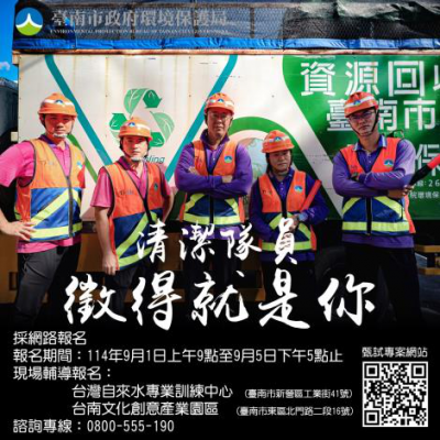 台南市環保局招考清潔隊臨時人員330名