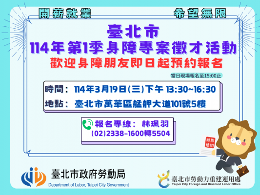 114年度第1季身心障礙者專案徵才活動 將於3月開跑!
