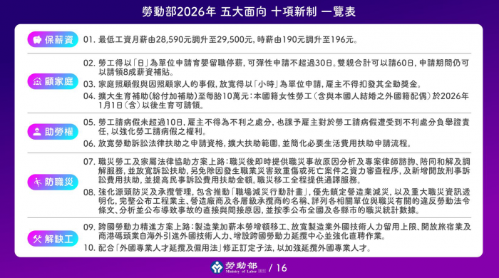 2026年勞工新制上路:加薪、育嬰、病假保障一次到位