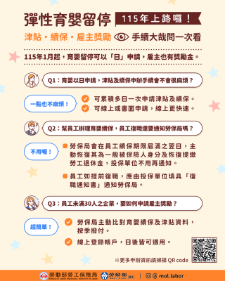 育嬰留停可按日申請 115年元旦上路!簡化流程、一次到位