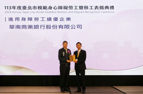 華南銀行獲頒「進用身障勞工績優企業」獎項