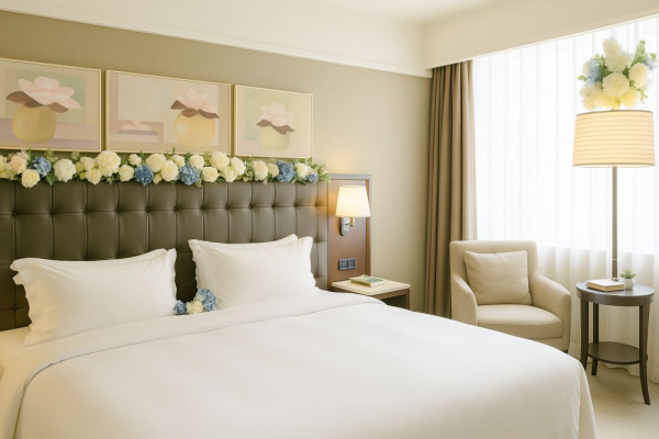 呼應福容大飯店連鎖的在地化目標,福容台北一館也致力開發在地特色。今年福容台北一館以「花藝樂境」為主題,將客房與餐飲融入音樂、藝文及藝術元素,提升顧客的整體體驗,並特別規畫出5、6間植感房,讓植物天賦的療癒氛圍彌漫全館,也讓旅客感受到新鮮的視覺與文化的感動,不知不覺中觸動旅客再訪的念想,強化該館市場競爭力。