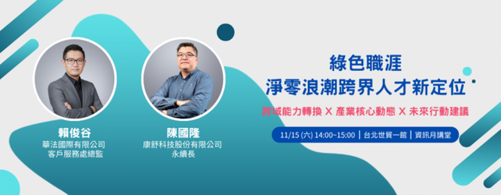 聚焦當前最受矚目的永續議題,從企業 ESG 轉型出發,探索「綠色職涯」的多元機會。邀請康舒科技股份有限公司永續長陳國隆與華法國際有限公司客戶服務處總監賴俊谷,分享產業如何在「淨零碳排」浪潮下重塑職能結構,以及跨界人才如何將自身專業轉化為永續價值。未來的職場不僅需要專業能力,更需要具備整合思維與行動力的「永續人才」,懂得連結產業趨勢與社會責任,才能在變動中找到新定位。