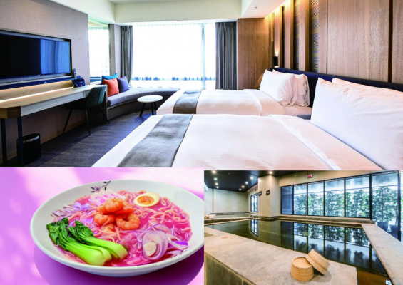 集團旗下山形閣也推出「粉紅假期一泊二食住宿券」,旅展期間優惠價NT$6,699。可眺望龜山島與蘭陽平原美景,一邊品嚐在地知名的「山友拉麵」櫻映炙蝦鹽麴拉麵,以及來自日本山形縣、以紫米釀造的「一刻薔薇氣泡酒」,享受精緻的風味體驗。