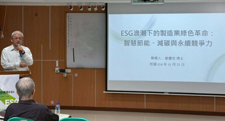 勞動部勞動力發展署高屏澎東分署與高科大合作,在今(2025)年4月推動成立「AI智慧製造人才培訓據點」,藉以補足產業轉型過程中迫切的AI技術人力缺口,並協助勞工掌握未來產業所需核心能力。在淨零轉型壓力下,製造業導入智慧節能以降低能源成本與碳排,已從選擇成為必考題。本次ESG產業交流活動特別邀請傑睿資訊服務股份有限公司總經理曾慶忠以「ESG浪潮下的製造業綠色革命:智慧節能、減碳與永續競爭力」為題, 分享透過 IoT 感測、AI 分析與能源管理系統優化能耗,可降低成本與碳排,提升營運韌性與永續競爭力,是企業未來關鍵策略。