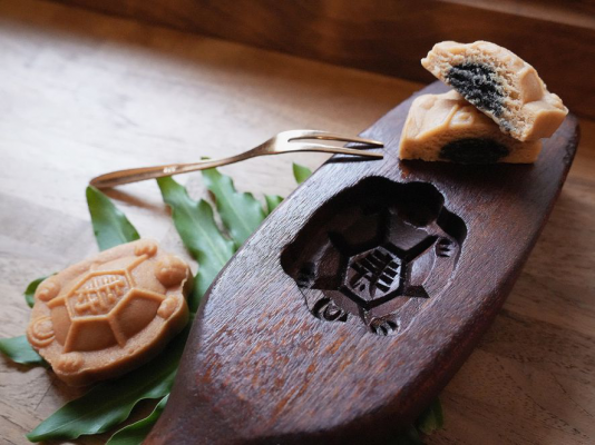 「蛇馬都有吃喝玩樂住房專案」附贈的「台北經典點心組」,精選大稻埕老字號品牌點心,如百年餅店「李亭香」的「平安龜」,造型討喜,寓意闔家平安。圖:台北凱撒大飯店提供