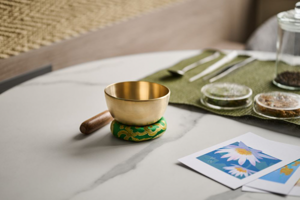 因此,在課程設計上, 更重視傳統瑜伽練習、聲音療癒與其他身心靈活動;戶外小花園由飯店自行栽種香草植物,每一次的練習,取一片綠葉,作為專注與意圖設定的引導,讓自然成為感官層次的一部分。