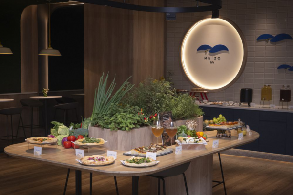 位於一樓的MN | ZO Café & Pizza以「自然發酵」作為核心哲學,由廚藝團隊以麵粉、細緻過濾飲水與時間培育自家酵母,讓麵糰在48 小時的冷藏慢發酵中產生更細緻的氣孔結構。經自然發酵的麵體更易消化、負擔更低,同時保留穀物的深度香氣。