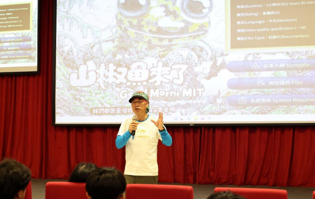 紀錄片導演麥覺明分享《山椒魚來了》創作歷程,透過影像引導高中生思考生態保育與行動實踐。照:中山醫學大學提供