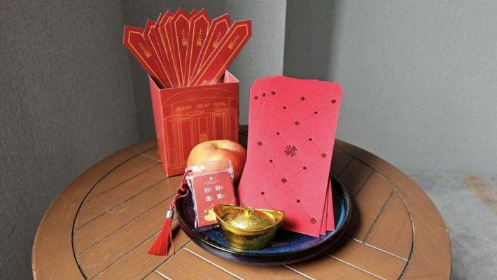 除了趣味互動外,高雄漢來也以貼近傳統年節文化的設計,為旅人增添滿滿儀式感。同樣在除夕至初三期間,凡入住高雄漢來客房,不限專案即可獲得「馬上爆富聖杯」可愛筊杯掛飾,應景又討喜的設計深受旅客喜愛;同時,透過官網或電話訂房的旅客,還可加碼獲得「馬上開運上上籤」迎賓禮,內容涵蓋「逗陣來漢來,財庫多到滿出來」、「漢來住一天,今年旺翻天」、「逆風如解意,賺到十個億」等多達 18 款幽默又吉利的籤詩,讓旅人在新春入住時會心一笑,也為新的一年討個好彩頭。