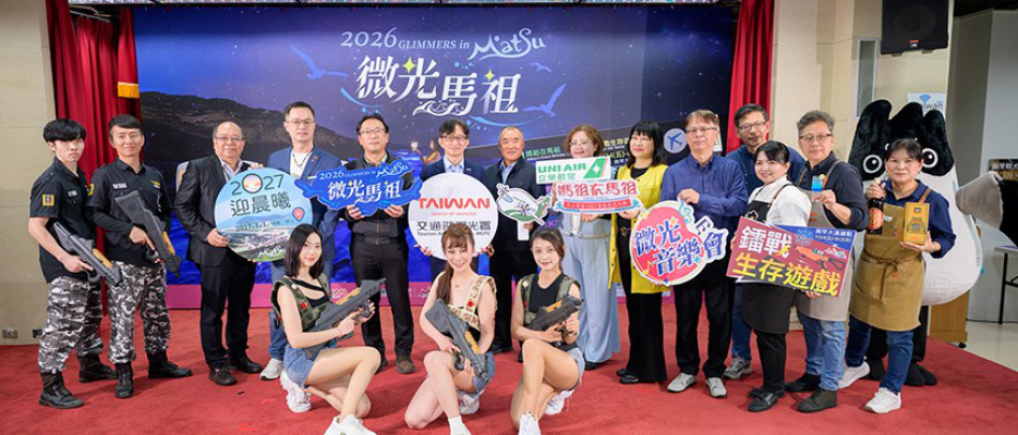 馬管處今(4月8日)於交通部觀光署旅遊服務中心舉辦2026微光馬祖系列活動啟動儀式,交通部觀光署主任秘書黃易成、連江縣交通旅遊局局長陳如嵐、交通部觀光署旅遊服務中心主任劉士銘、立榮航空協理高德燕、華信航空公關室主任黃尤欗、長汎旅行社協理吳建興、那米哥旅行社日本部協理林琛淯、易飛網國際旅行社副理陳冠孜、台灣旅行業國民旅遊發展協會理事長蔡子建及交通部觀光署馬祖國家風景區管理處處長洪志光等,共同為該活動揭開序幕。