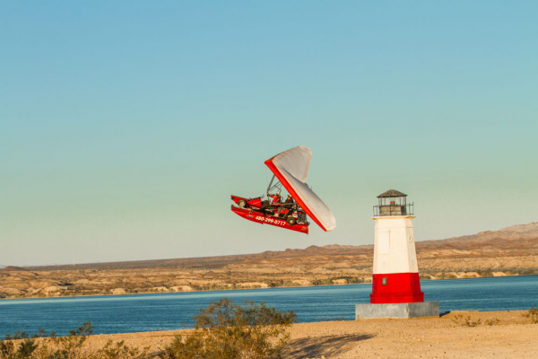 乘著三角翼飛行滑翔哈瓦蘇河。圖:亞利桑那旅遊局提供