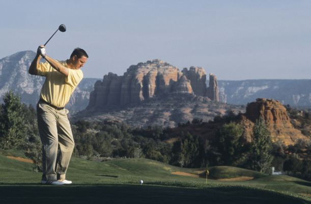 體驗塞多納紅岩景觀環繞下的揮桿樂趣。圖:亞利桑那旅遊局提供