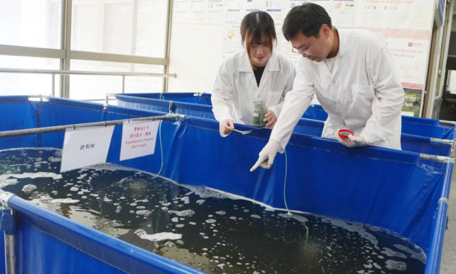 大葉大學藥用植物與食品保健學系學生進行微藻應用實驗。照:大葉大學提供