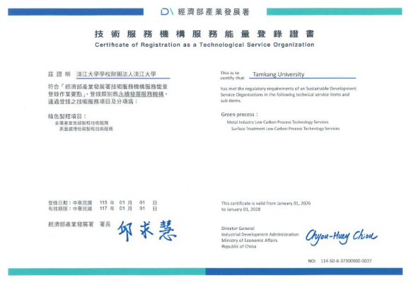 淡大獲經濟部SD6認證 助金屬產業低碳轉型